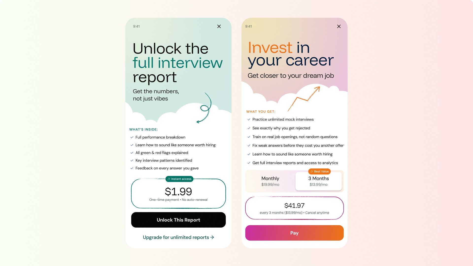 Redesigned monetisation and feedback flows for an AI-powered interview prep app