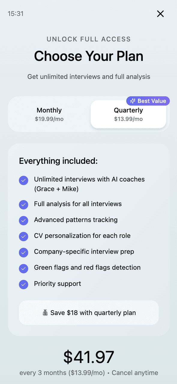 Before I was even thinking about UI, I created a draft paywall with AI to quickly discuss with the team that we are happy with the direction, information, and proposal.